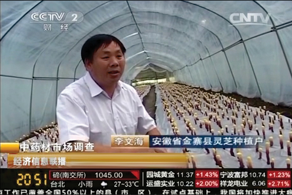 5、縣政府部門指定康美來基地作為金寨縣靈芝種植基地的代表,向央視推 薦。李文海是種植能手的代表。