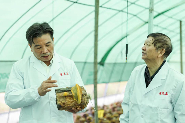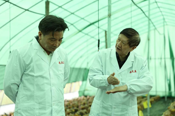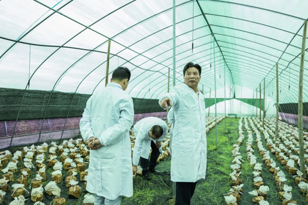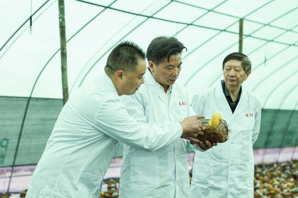 集團(tuán)技術(shù)總顧問沈教授走進(jìn)基地大棚,詳細(xì)了解基地桑黃生長情況,重點(diǎn)調(diào)研桑黃種植技術(shù)、病蟲害存在問題,確立科研攻關(guān)課題,并提出具體技術(shù)指導(dǎo)建議。