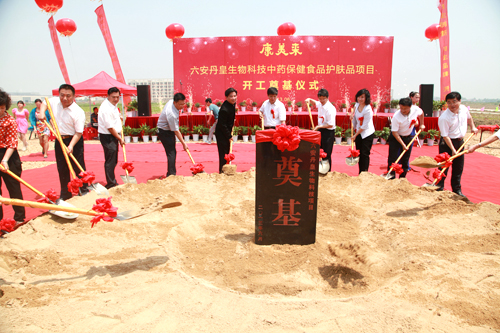 我公司新廠六安丹皇生物科技有限公司總經(jīng)理趙欣在會上作了項目介紹和表態(tài)發(fā)言。項目總投資1.5億元,征地面積85.6畝,總建筑面積55000平方米,將建成國際領先的保健品和護膚品生產(chǎn)線,年產(chǎn)值達20億元。余春賦董事長率公司全體員工列隊迎接市領導親臨現(xiàn)場,為我公司新廠區(qū)項目奠基。