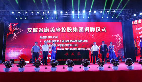 中共六安市委常委、市人民政府副市長束學龍、市人民政府副秘書長王友年、六安市經濟開發區工委副書記、管委會副主任(主持工作)夏倫平參加會議,并登臺為康美來集團揭牌。