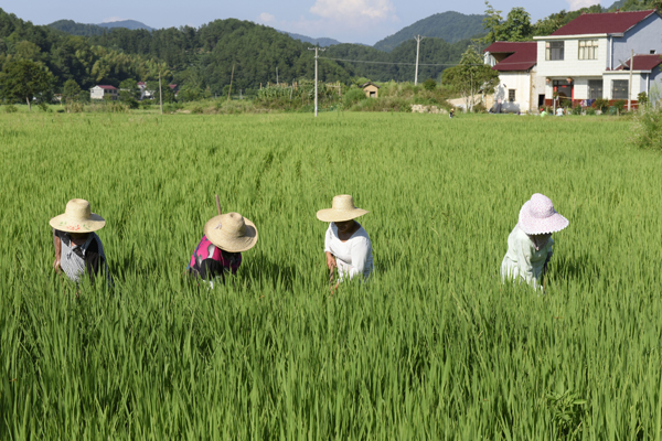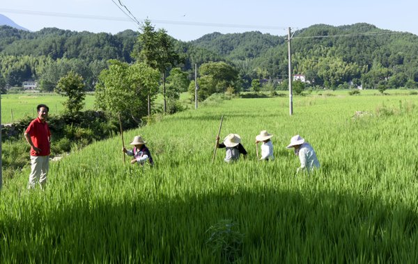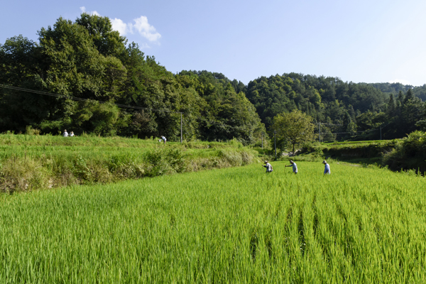 7月23日,余春富董事長和安徽農(nóng)業(yè)大學(xué)專家丁克堅教授、李福寶教授專程前往康美來集團云湶谷公司大別山長嶺農(nóng)場,觀察高山有機香稻生長情況,50多位農(nóng)場農(nóng)民工正在稻田里除草,用人工的方法,拔掉每一顆雜草。董事長說,這種原始方法我們雖然人工成本高,但堅決不用除草劑,嚴格按有機稻標準生產(chǎn)作業(yè)。云湶谷農(nóng)場是康美來會員自家的農(nóng)場,確保高品質(zhì)生產(chǎn),不打農(nóng)藥,不施化肥,不用除草劑。