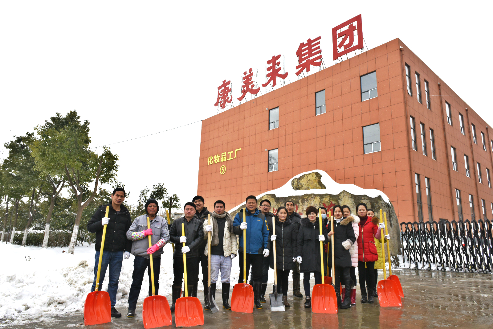 冒著瑟瑟寒風(fēng)進行廠區(qū)道路的掃雪清理工作