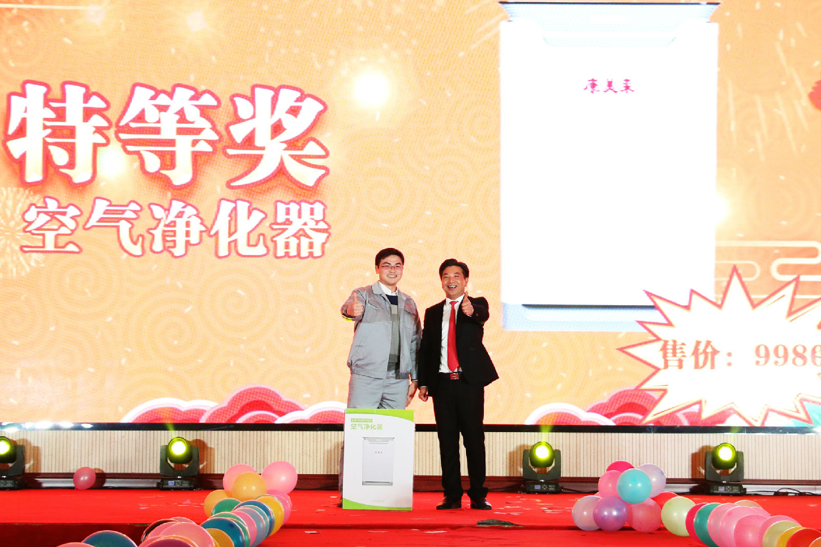 現場一輪一輪的抽獎也讓晚會高潮不斷,驚喜不斷。60名幸運獎,30名三等獎,10名二等獎,5名1等獎,1名特等獎,總計106名家人收獲了公司的幸運獎。