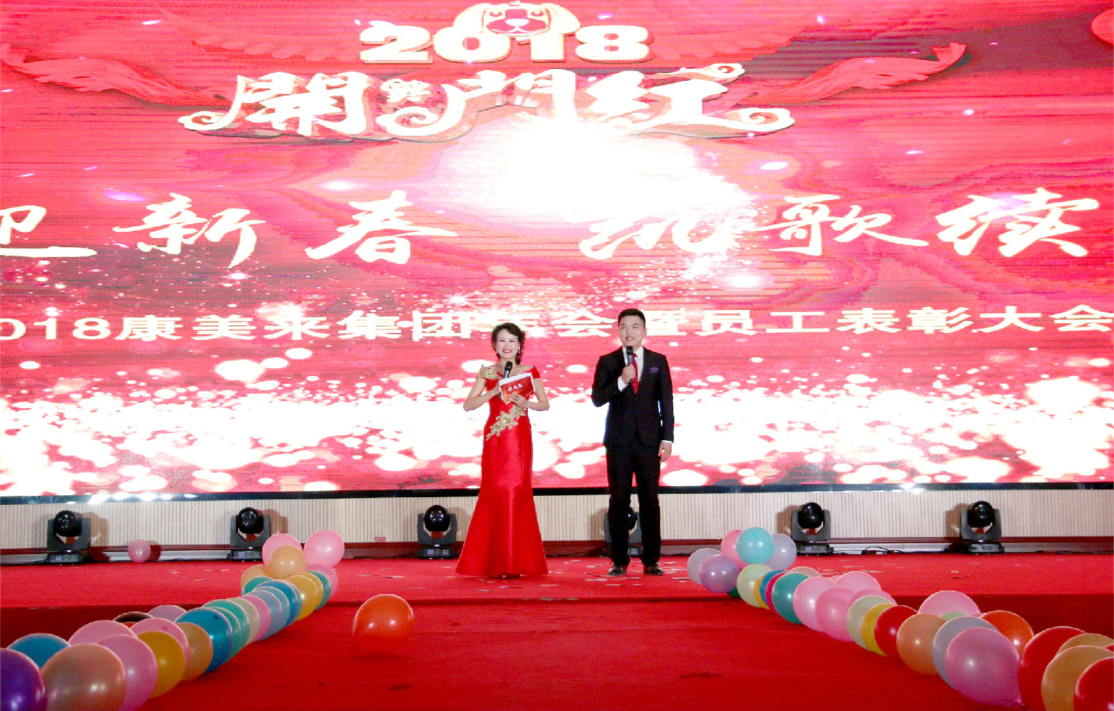 在熱烈的掌聲與歡呼聲中董事長余春富帶領大家一起回顧了成績斐然的2017,滿懷信心的展望了康美來即將大發展的2018! 他感謝全體同仁在過去一年的付出與努力,同時號召全體伙伴緊跟公司發展步伐,認真工作,完成目標,同享發展成果!