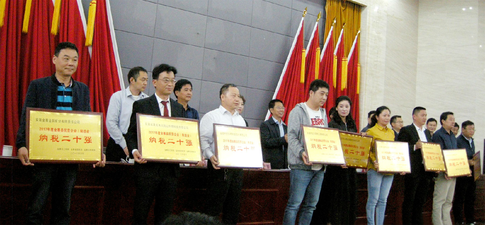 會上,汪承平對2017在經(jīng)濟建設、納稅貢獻、精準扶貧等方面做出突出貢獻的單位和個人的辛苦努力表示慰問,在工作中涌現(xiàn)出的一批先進單位和個人,受到了縣委、縣政府以及社會各界的充分肯定,對獲得表彰的單位表示祝賀。