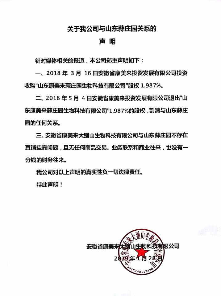 關(guān)于我公司與“蒜莊園”有關(guān)情況的聲明
