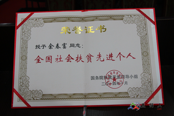 余春富董事長(zhǎng)獲“全國(guó)社會(huì)扶貧先進(jìn)個(gè)人”榮譽(yù)證書