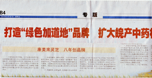 安徽日?qǐng)?bào)報(bào)道:康美來(lái)靈芝,八年創(chuàng)品牌