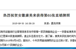 熱烈祝賀安徽康美來(lái)獲得第65張直銷(xiāo)牌照